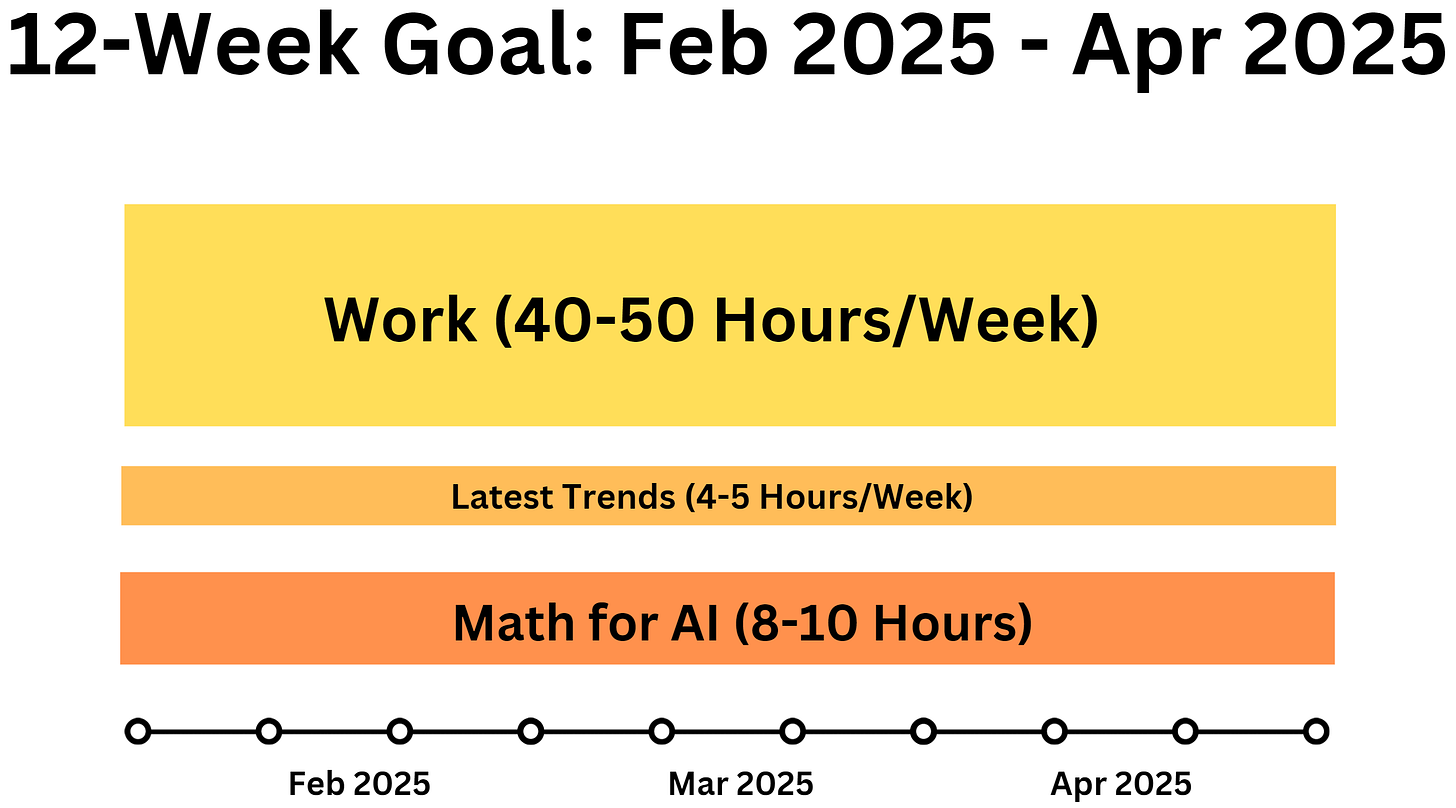 This 12-week plan is designed to help me balance my work, stay updated with the latest trends, and deepen my understanding of AI.